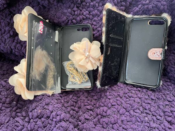 Brand new in package never used cell phone case/covers. 4 styles for iPhone 7 Plus/8plus. 2 soft fuzzy & 2 textured floral designs. $15/each or all 4 for $50 Cash only Pick up in St. B
