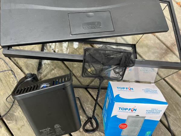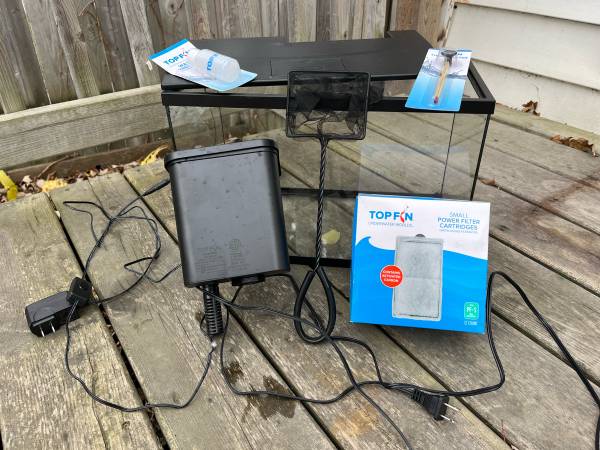 5 gallon fish tank. Gently used. (Filters, net, water test bottle & thermometer-all new in package). Comes with lid & light. Pump, filters, thermometer, water test bottle & net. Pick up...