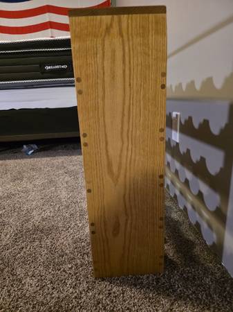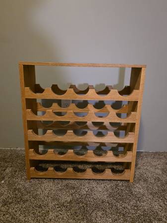 Wood Wine Rack – Holds 25 Bottles Solid wood wine rack in great condition. Fits up to 25 standard bottles. Perfect for kitchen, bar area, or basement storage. Dimensions: • Width: 56.5 cm • Height:...