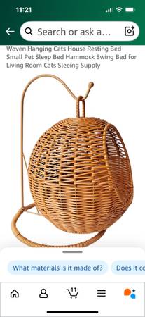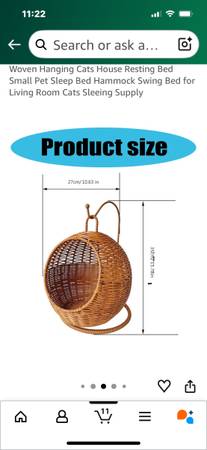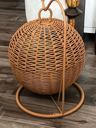 Hanging wicker cat bed. New- never used. See photos for measurements & description. Puck up in St. B. Cash only!